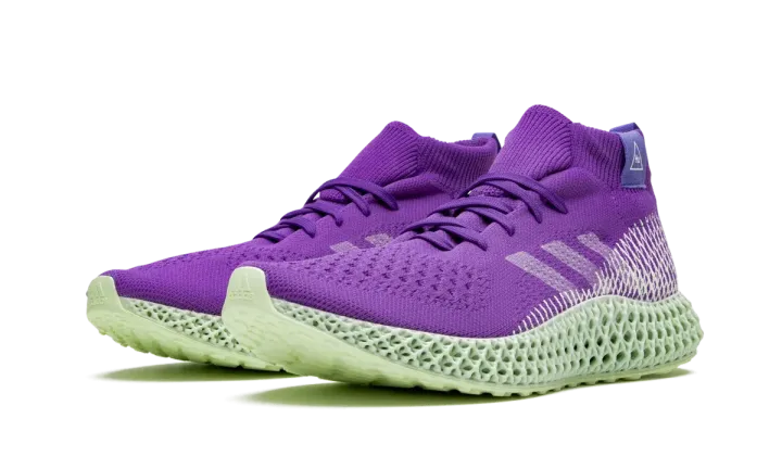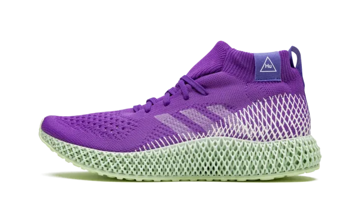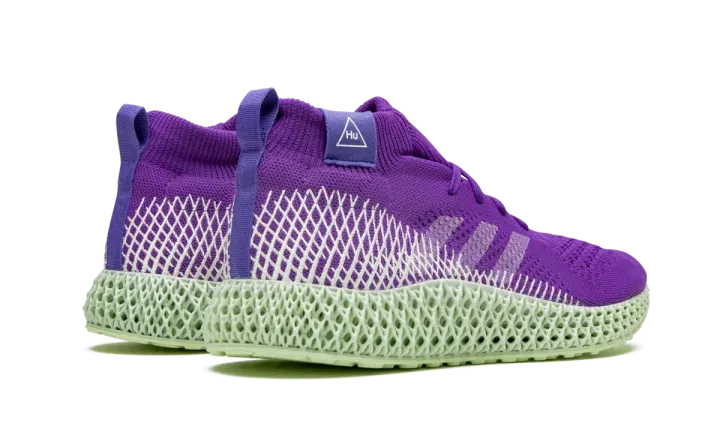 The Pharrell x adidas PW 4D "Purple" is a hybrid model that fuses design elements from Pharrell's Hu collection with the forward-thinking ethos of the 4D Futurecraft. The bold purple Primeknit-constructed upper provides a snug fit while remaining breathable and flexible. Painted white Three Stripes branding can be found on the mid-panel while the criss-crossed pattern of the four-dimensional midsole extends well into the heel and collar. The ribbed elastic collar features a Hu-branded patch. Mint-colored 4D soles provide tuned support and cushioning for unrivaled comfort. The Pharrell x adidas PW 4D "Purple" was released on December 20, 2019.