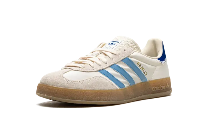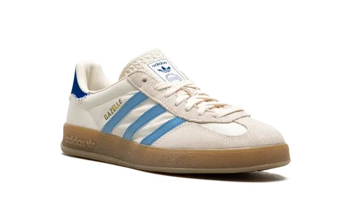 Step into a vibrant aesthetic with the Adidas Gazelle Indoor "Off-White / Clear Sky". This celebrated sneaker features a soft Off-White suede upper complemented by serene Clear Sky blue accents and a classic gum sole. It delivers a comfortable fit and a versatile look that's perfect for making a sophisticated statement every day.