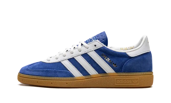 Step into a piece of Adidas history with the Handball Spezial "75th Anniversary Pack Collegiate Royal". This celebrated sneaker features a soft Collegiate Royal blue suede upper, paying tribute to the brand's 75 years of innovation. Its classic gum sole and low-profile silhouette deliver a comfortable fit and a timeless look that's perfect for making a sophisticated statement every day.