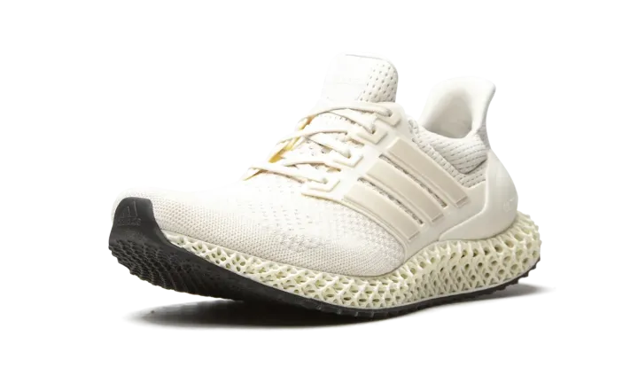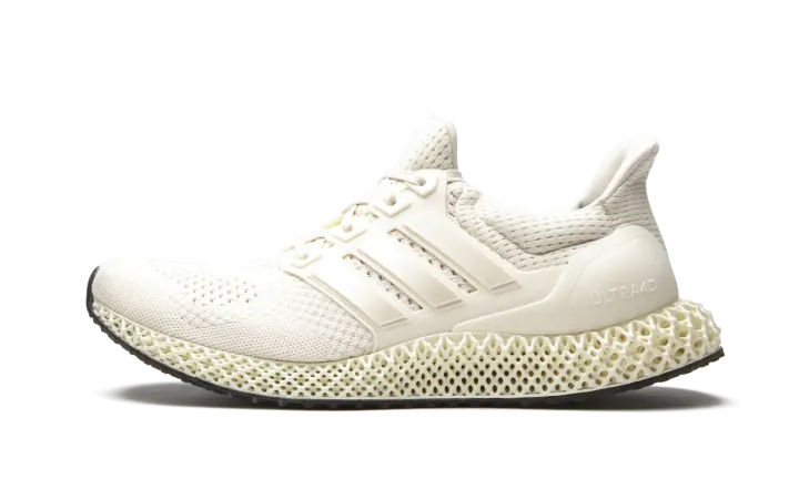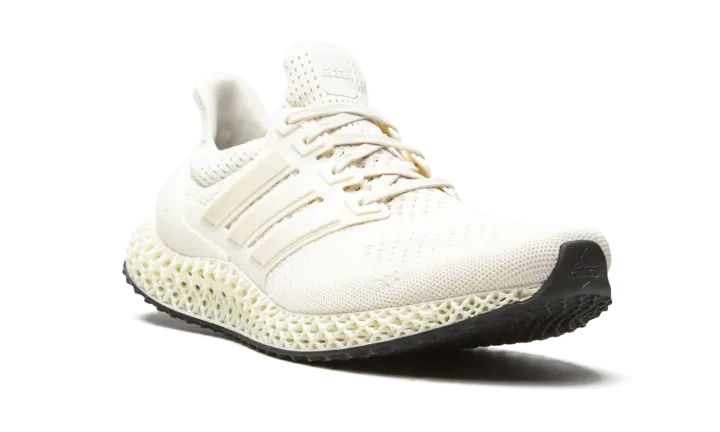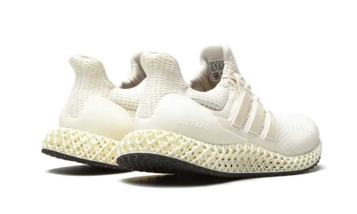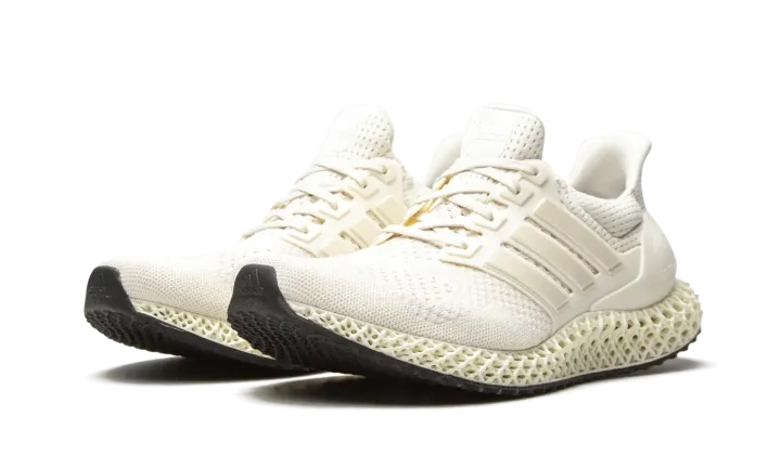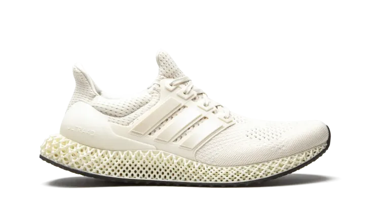 The adidas Ultra 4D "Chalk White" is a hybrid silhouette that combines two iconic, high-comfort adidas models: the Futurecraft 4D and the Ultra Boost. Arriving in December 2020, the "Chalk White" colorway is one of several launch styles of the Ultra 4D released by adidas. The design combines aspects of the two previously mentioned models for a shoe that is forward-thinking in both design and comfort. A shade of Chalk White Primeknit forms the upper of the sleek shoe, which is taken from the Ultra Boost 1.0. On the mid-panel, the supportive lace "cage" is a derivative of the Ultra Boost 1.0. The molded heel counter is lifted from the Ultra Boost 1.0, as well. A subtle appearance of Mint Green lands on the 4D-printed midsole in reference to the original look of the adidas Futurecraft 4D. A black rubber outsole finishes off the look. Release date: December 14, 2020.