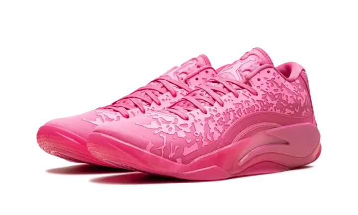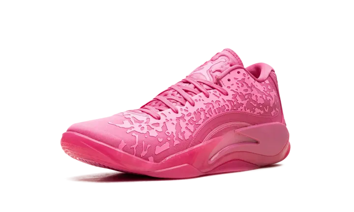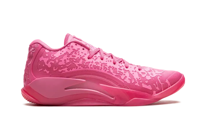 The Jordan Zion 3 "Pink Lotus" is a monochromatic pink colorway of Zion Williamson's third signature shoe with Jordan Brand that features ornate floral details. The "Pink Lotus" Jordan Zion 3 is inspired by the Lotus Flower's ability to grow and flourish in the toughest conditions. As for its design, the colorway features a Pink Lotus-colored textile upper and intricate floral embroidery on the heel. Zion's signature branding with Jordan Brand appears tongue and heel. Underfoot, the futuristic-looking sole is also designed in a Pink Lotus hue, giving the shoe a single-tone look.