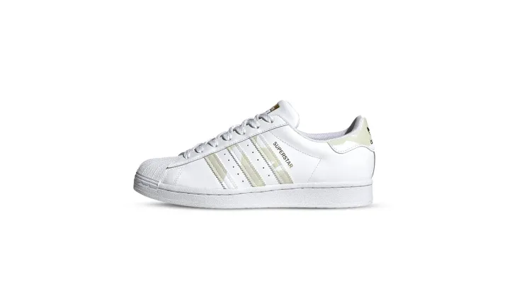 The Superstar shoe features a classic design, making it a versatile and timeless addition to any sneaker collection.
