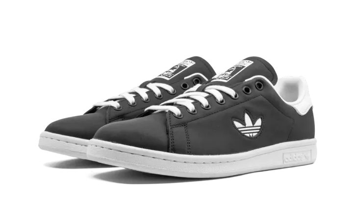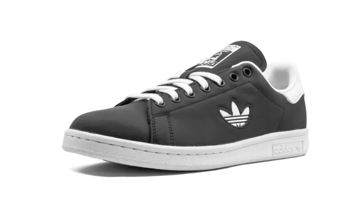 The adidas Stan Smith takes the signature court style of the past and redesigns it for today. What makes this shoe different is the subtle twist on the classic silhouette. Instead of the standard perforated Three Stripes, this version comes with a cutout Trefoil on the side. A smooth leather upper comes in sleek black, with white accenting in the laces, Trefoil logo, a portion of the heel, and the collar. A matching white sole grounds the pared-down sneaker.