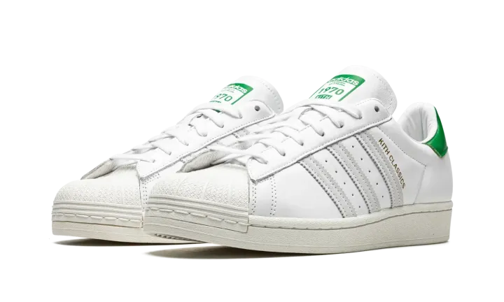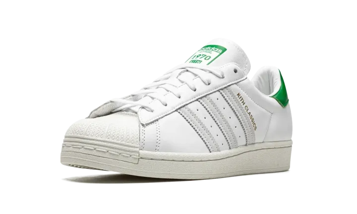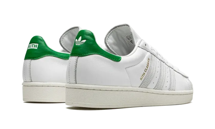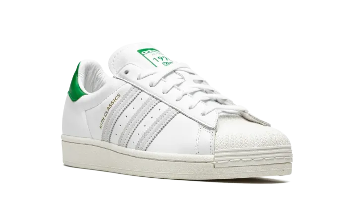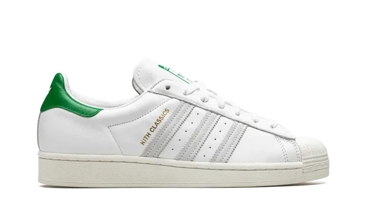 The Superstar 'Kith' shoe features a classic design, offering a versatile and timeless addition to any sneaker collection.