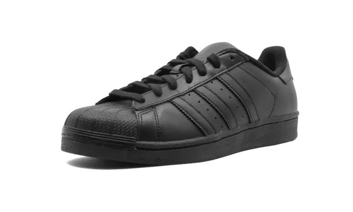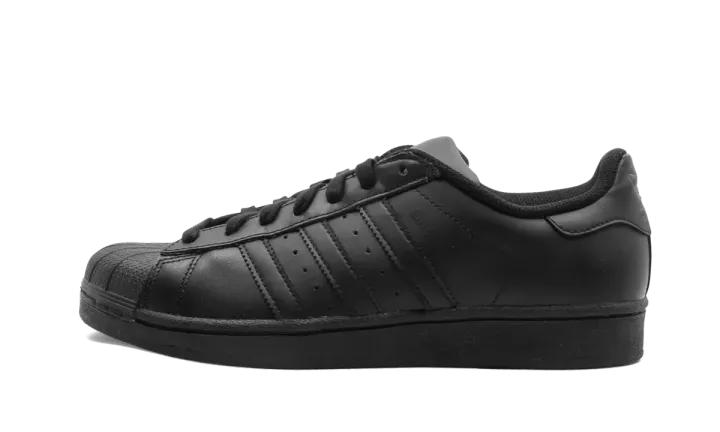 The adidas Superstar Foundation elevates the original silhouette with premium materials. This version of the Superstar comes with a full grain leather upper and the signature rubber shell toe. The sporty low-top lifestyle sneaker features a cupsole and a rubber outsole with herringbone traction. For this model, every detail on the adidas Superstar Foundation lifestyle sneaker is covered in black.