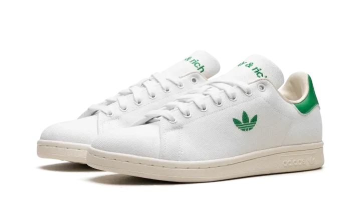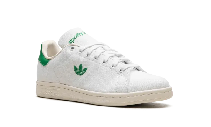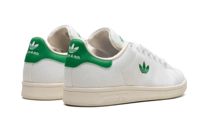 The Sporty & Rich x adidas Stan Smith "White/Green" is a collaboration between the popular clothing brand and adidas that modifies the classic tennis shoe. Emily Oberg's Sporty & Rich clothing and lifestyle company treats the adidas Stan Smith to a new canvas design on the "White/Green" colorway instead of the model's usual leather construction. Specifically, the upper features a durable white canvas base and a green adidas Trefoil logo on the sides. A satin inner lining of the shoe provides the wearer with a comfortable fit. Green "Sporty & Rich" embroidery appears on the tongue. A slightly off-white-colored rubber sole gives the shoe a vintage look. Release date: November 10, 2023