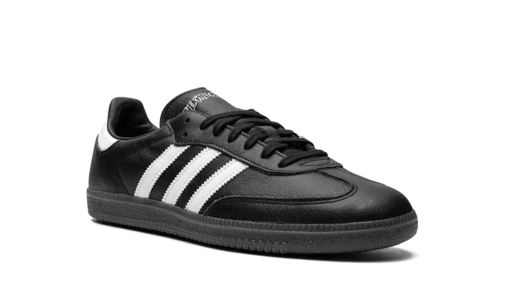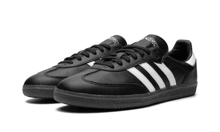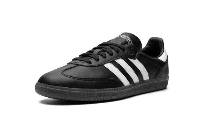 The Fucking Awesome x adidas Samba "Black/White" is a collaboration by Jason Dill and Anthony Van Engelen's skate brand on a classic-looking colorway of the ultra popular retro soccer shoe. Fucking Awesome and adidas continue their long-running partnership on the "Black/White" adidas Samba colorway. The shoe features a premium black leather upper with white leather Three Stripes branding on the sides. Additional white leather detailing is found on the heel tab on the back of the shoe. A black suede overlay appears on the toe. "Fucking Awesome" branding is seen on the tongue. A black rubber sole finishes off the look. Release date: May 24, 2023