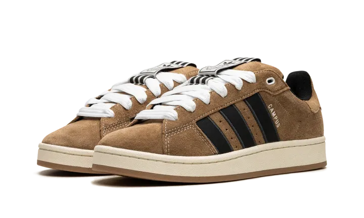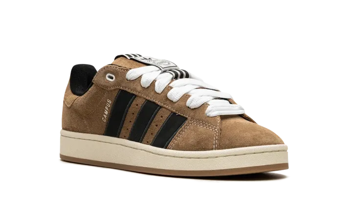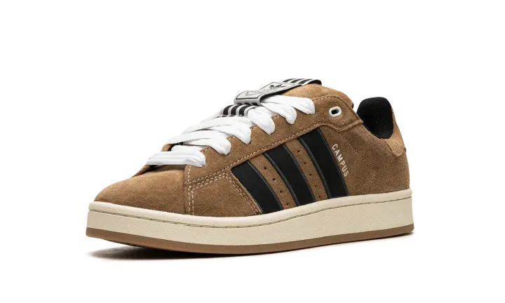 The adidas Campus 00s "YNuK - Brown Desert" is a modified version of lifestyle shoe with design elements inspired by early 2000s-era sneaker aesthetics. From a Y2K-inspired collection that also features an adidas Adimatic Mid among other silhouettes, the Campus 00s "YNuk - Brown Desert" features graphics by Portuguese artist Crude on the insole and a decidedly vintage-looking appearance. The shoe had a brown suede upper with black Three Stripes branding on the sides. Oversized white laces are a nod to skate shoe styling from the early 2000s. Underfoot, an off-white rubber midsole and gum rubber outsole complete the look. Release date: May 24, 2023