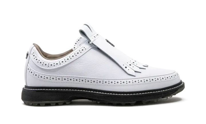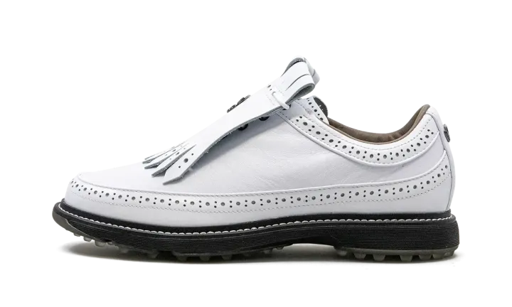 The Bogey Boys x adidas Modern Classic 80 is a collaboration between hip-hop star Macklemore's record label and adidas on clean colorway of the golf shoe. Bogey Boys bring a modern edge to the adidas Modern Classic 80, otherwise known as MC 80. Made from at least 50% recycled content, the shoe features a white leather construction with a kiltie lace cover. Underfoot, the Core Black sole gives the shoe a lifestyle look in spite of its golf shoe design. Release date: June 14, 2023