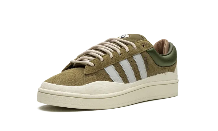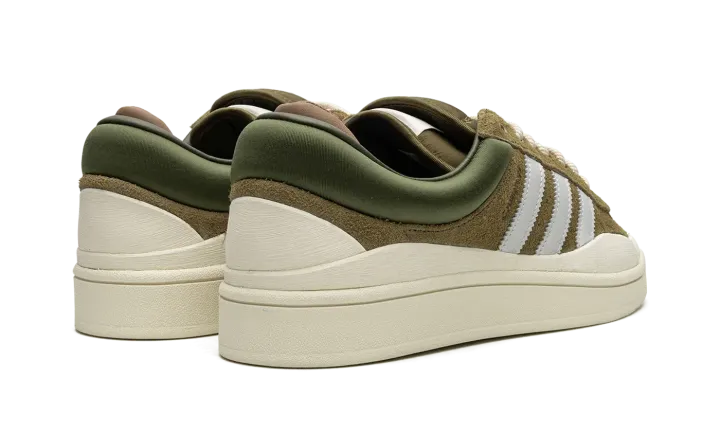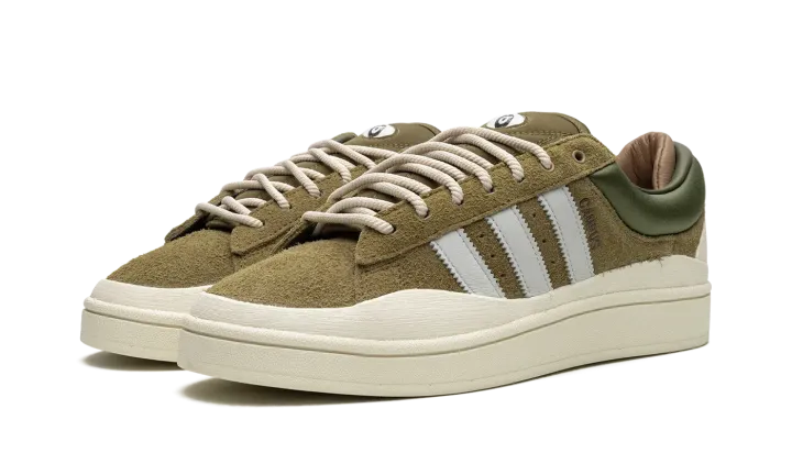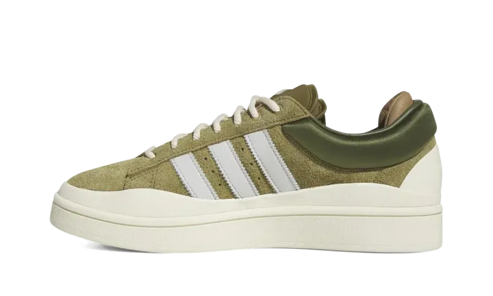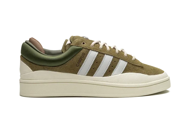 The Bad Bunny x adidas Campus "Wild Moss" is a collaboration by the Grammy Award winning recording artist and adidas on the classic sneaker in an earth tone colorway. Bad Bunny's collaborative run with adidas continues on this Campus "Wild Moss," a clean, casual, and easy-to-wear colorway. The shoe features a Wild Moss suede upper with tonal overlays on the eyelets and white leather Three Stripes detailing on the sides. Bad Bunny's signature logos appear on the tongue and heel. Per Bunny's other collaborations with adidas, a "double" tongue and layered, padded heel complete the look. Release date: April 29, 2023