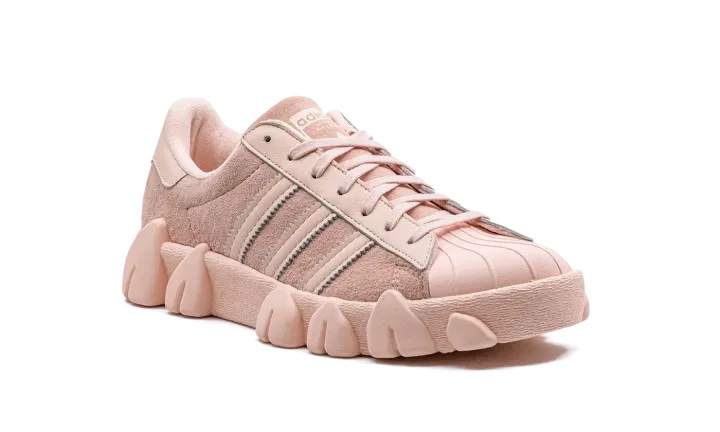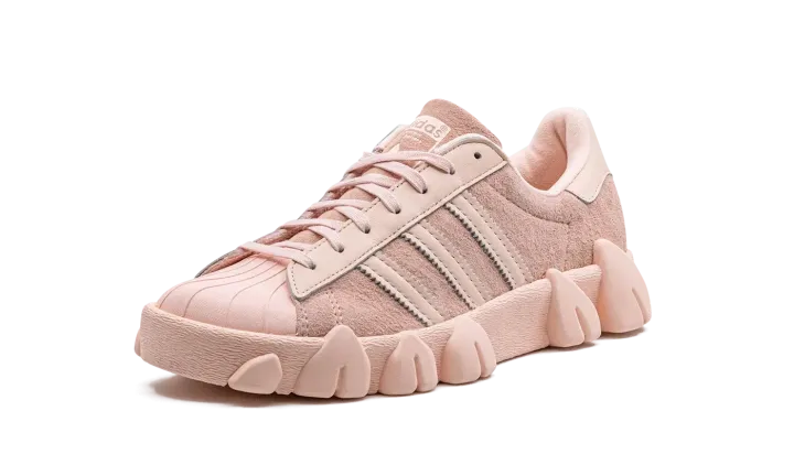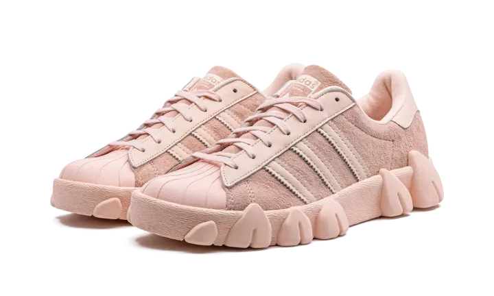 The ANGEL CHEN X Superstar 80S 'Icey Pink' shoe blends classic Adidas Superstar style with Angel Chen's distinctive design, featuring a vibrant icey pink aesthetic.