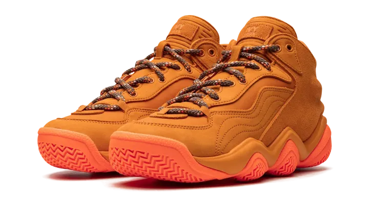 The Ivy Park x adidas TT2000 "Orange" is a collaboration between Beyonce's sportswear line and adidas on an all-orange colorway of the retro basketball shoe. Since debuting her Ivy Park partnership with adidas in 2020, Beyonce has gone on to put her signature spin on several great adidas sneakers, including the adidas TT2000, otherwise known as the adidas Top Ten 2000. The shoe features a Focus Orange suede upper with tonal nubuck and neoprene elements on the toe and collar, respectively. The knit, rope-style laces feature hues of brown, orange, and white. Dual "Ivy Park" and adidas branding lands on the tongue. Release date: February 9, 2023