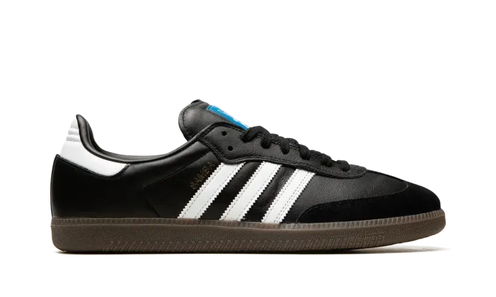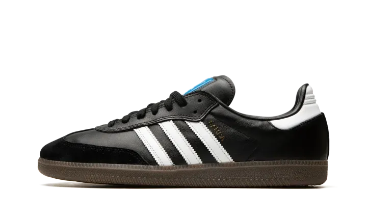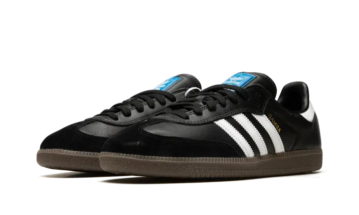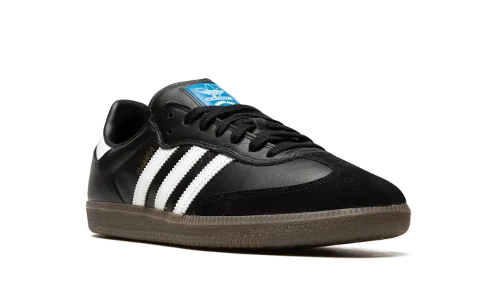 The adidas Samba ADV "Black/White" is the iconic black-and-white colorway of the retro sneaker updated with extra padding and other technology for skateboarding performance. In the "Black/White" colorway, the model features a black leather upper with tonal suede on the toe. White Three Stripes and gold "Samba" branding appear on the side. An adidas Samba ADV graphic is seen on the tongue. A dark gum rubber sole completes the look.