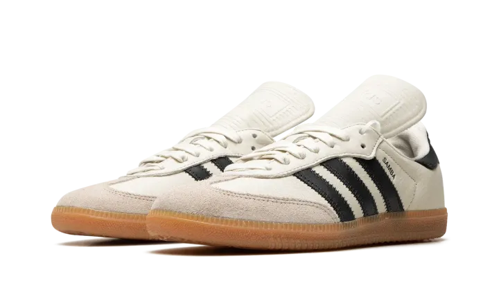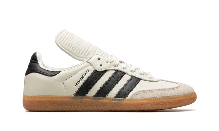 The Human Race x adidas Samba "White" is a collaboration on the popular sneaker by Pharrell Williams's lifestyle brand. Human Race updates the adidas Samba, one of the most in-demand shoes of the last few years, with a tastefully subtle makeover on this "White" colorway. The shoe features a white leather construction with black leather Three Stripes branding on the sides. "Human Race" detailing appears in gold foil along the aforementioned logo on the lateral side of the shoe. Elsewhere, a grey suede overlay appears on the toe. This version of the adidas Samba has an exaggerated tongue. Underfoot, the gum rubber sole unit completes the look. Release date: December 2, 2022