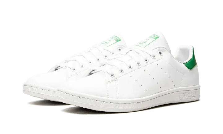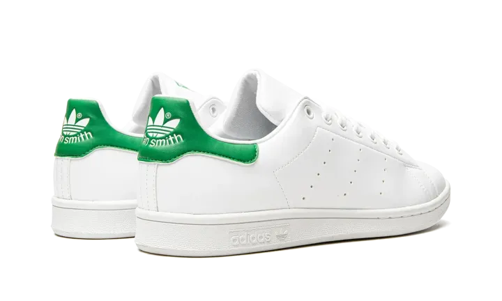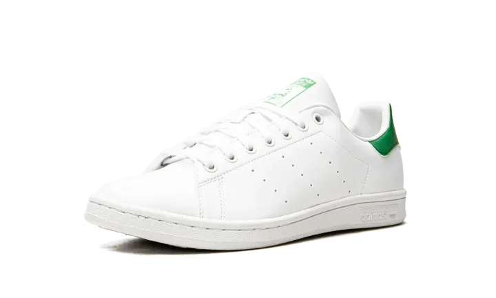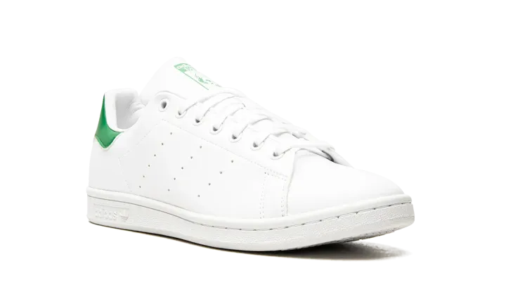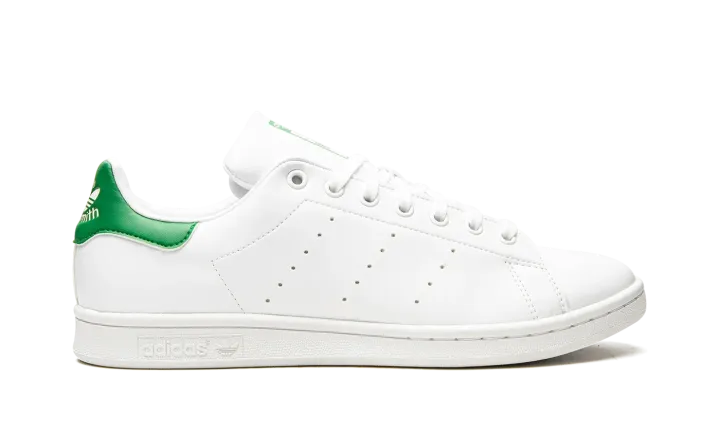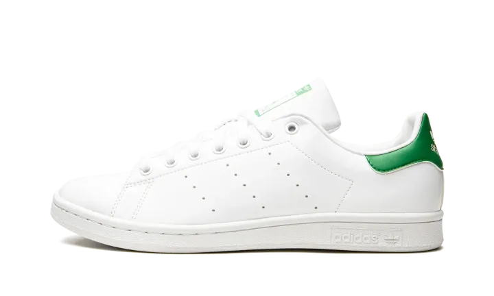 The adidas Stan Smith "White/Green" is a timeless colorway of the vintage tennis shoe that debuted in the 1970s and is now one of the most popular lifestyle shoes by the heritage footwear brand. Named after and worn by Stan Smith, the former pro tennis player, the adidas Stan Smith is a casual, everyday sneaker that excels in versatility. The minimalist design is complete with a white leather upper with a contrasting green heel tab with "adidas Stan Smith" branding. Perforated Three Stripes detailing appears on the sides. Throwback "adidas Stan Smith" detailing, which includes a portrait of Smith himself, is printed in green on the white leather tongue. A classic white rubber sole finishes off the iconic sneaker.