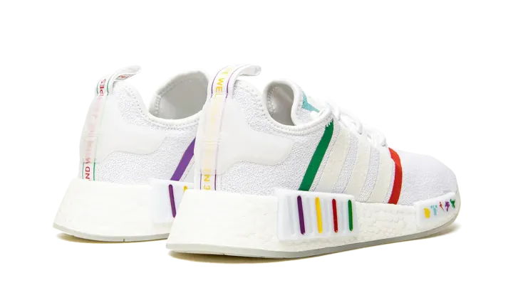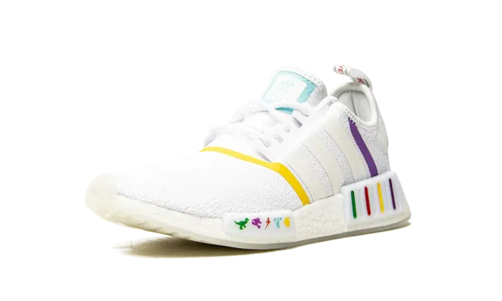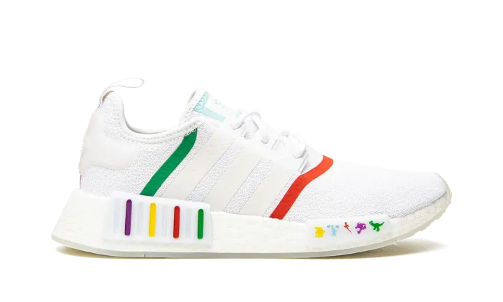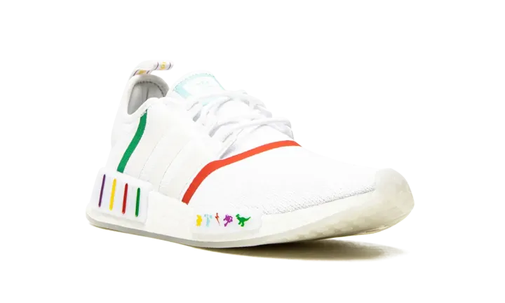 The Disney Pixar x adidas NMD R1 "Toy Story" is a Summer 2021 collaboration between the popular animation studio and adidas on the retro-modern lifestyle shoe. A collection of popular characters from the film "Toy Story" appear on the white forefoot midsole plug on this NMD R1, including icons like Buzz Lightyear and Rex. The upper features a white Primeknit construction with contrasting colors appearing on the tape that surrounds the tonal Three Stripes branding. Dual Disney Pixar and adidas branding is found on the tongue. Multicolor stripes adorn the plug located on the heel of the white Boost foam midsole. Release date: July 15, 2021