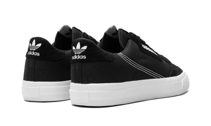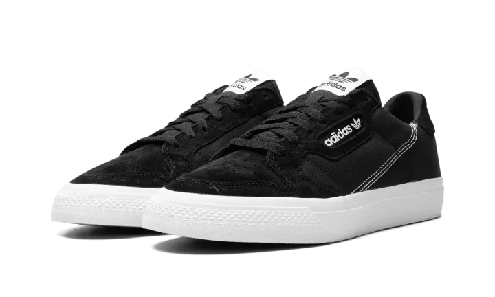 The adidas Continental Vulc has attracted a cult following among sneaker fans who have strong appreciation for retro style. Implementing a modern update to the classic '80s fitness trainer, adidas applies plush suede accenting and a leather heel tab to the durable canvas upper. All of these materials are highlighted in black. An adidas branding window in white on the mid-panel contrasts the monochromatic design of the upper, while a white leather adidas logo on the heel and tongue tag do the same. To round things out, the Continental Vulc sports a vulcanized white sole.