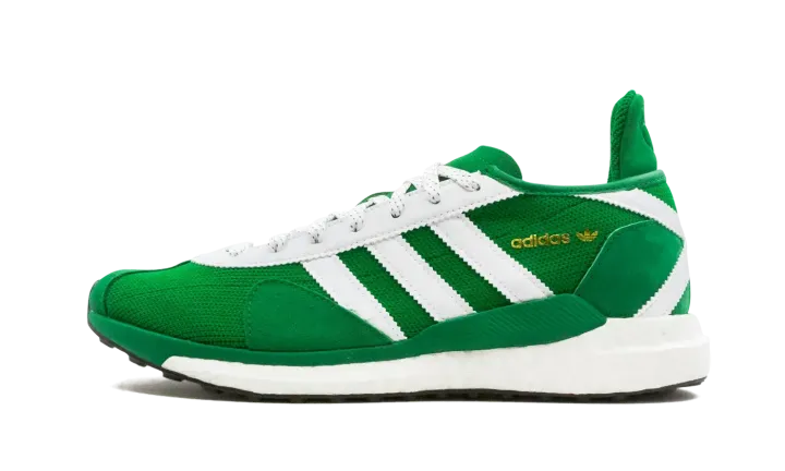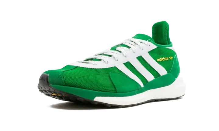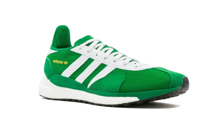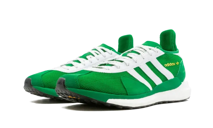 The HUMAN MADE x adidas Originals Tokio Solar HM adds vibrant green color to a new silhouette brought to you by visionary creative and archivist NIGO. The collaborative adidas shoe draws inspiration from NIGO's personal archive and adidas's vintage sporting heritage. Taking design elements from the Tokio trainer that was developed for the 1964 Tokyo Olympics, the Tokio Solar HM is made of a Primeknit upper with suede panels and leather Three Stripes. An "X" detail, made out of the same leather as the Three Stripes, appears on the mid panel and heel.
