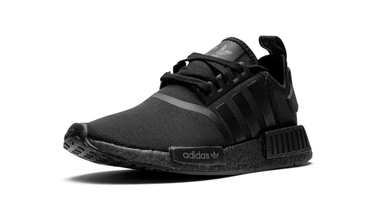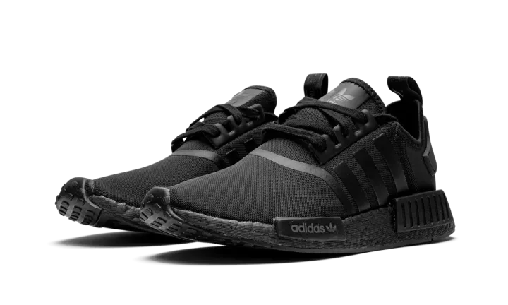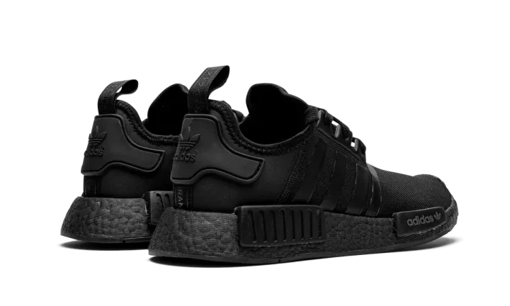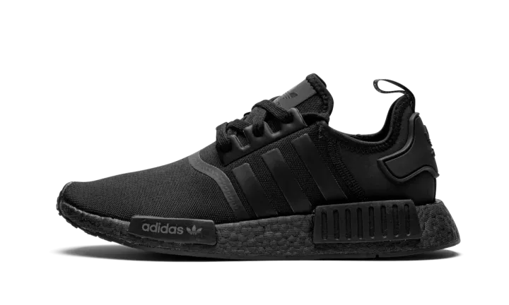 The adidas NMD_R1 "Triple Black" is a popular colorway of the Three Stripes silhouette that brings together the best of adidas innovations in running. The low-top runner is introduced with an all-black monochromatic look across the shoe's Primeknit upper. Adidas branding marks the tongue, heel, and front midsole block. Typically white, the Boost midsole of this pair opts for black to match the rest of the "Triple Black" shoe design.