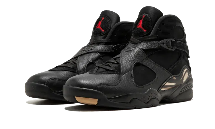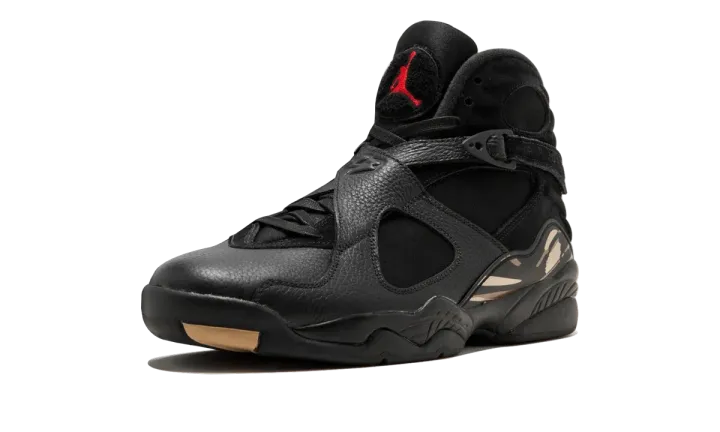After what seemed like years of looks at samples and pairs only on Drake's feet, the OVO x Air Jordan 8 finally dropped in early 2018 in white and black leather colorways accented with metallic gold. Available here is the black edition, featuring a tough yet elegant look for the Air Jordan 8 in full-grain leather and suede with gold and red accents while the October's Very Own owl logo is found on each heel tab and insole. Of course, the black Air Jordan 8 OVO disappeared instantly at retail, so pick them up here at Stadium Goods before they disappear for good.
