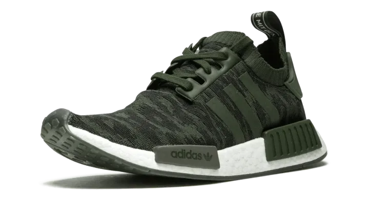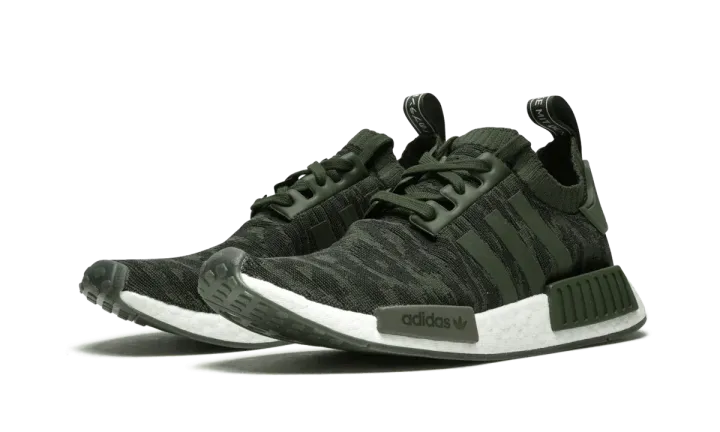 The adidas NMD R1 PK "Night Cargo" covers the popular lifestyle model in a military-esque color scheme. An olive green Primeknit upper is covered in a black camouflage pattern. Tonal hits are used on the EVA midsole inserts, heel pull tab, and outsole. A subtle hit of highlighter green appears on the medial ankle collar. The adidas NMD R1 "Night Cargo" sits atop a white Boost midsole to provide maximum comfort for all-day wear.