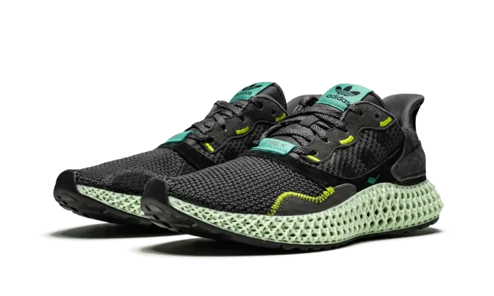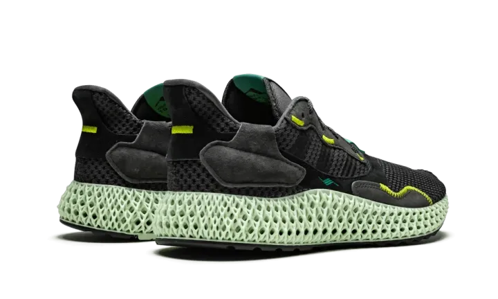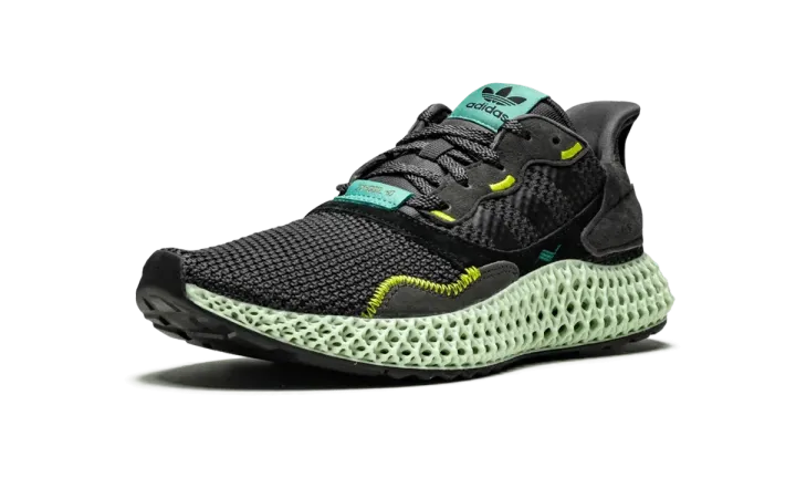 The adidas ZX 4000 4D "Carbon" combines the vintage running shoe aesthetic of adidas with the brand's innovative 4D sole construction. This model updates the ZX 4000 runner from the early '90s with a Primeknit construction up top and a 4D sole unit below that is built with Digital Light Synthesis. This is the second colorway of the ZX 4000 4D, and it features a Carbon black upper with a Primeknit base and suede overlays. Green and neon yellow accents add color, while the 4D midsole's signature mint green shade is found below. The adidas ZX 4000 4D "Carbon" released on April 6, 2019.