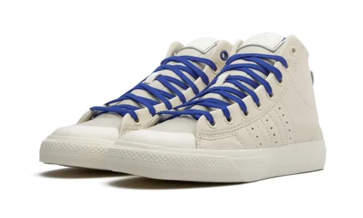 The Pharrell Williams x adidas Nizza Hi is one of the clean designs featured in the hip-hop artist's "March Madness" collection of 2020. Consisting of tie-dye apparel and neutral-colored footwear options, the expansive range is unquestionably one of the most popular collaborations of 2020. This ultra versatile high-top features an "Ecru Tint" leather upper with perforated Three Stripes detailing on the mid-panel and contrast stitching separating each panel. Bold royal blue laces add a unique touch to an otherwise elegant design. The Pharrell Williams x adidas Nizza Hi was released in March 2020.
