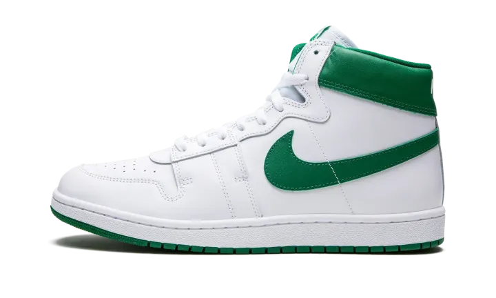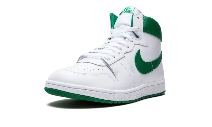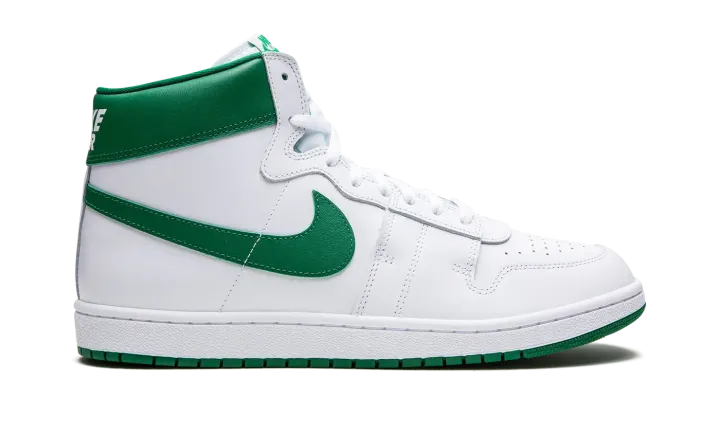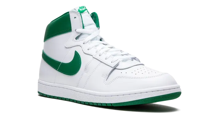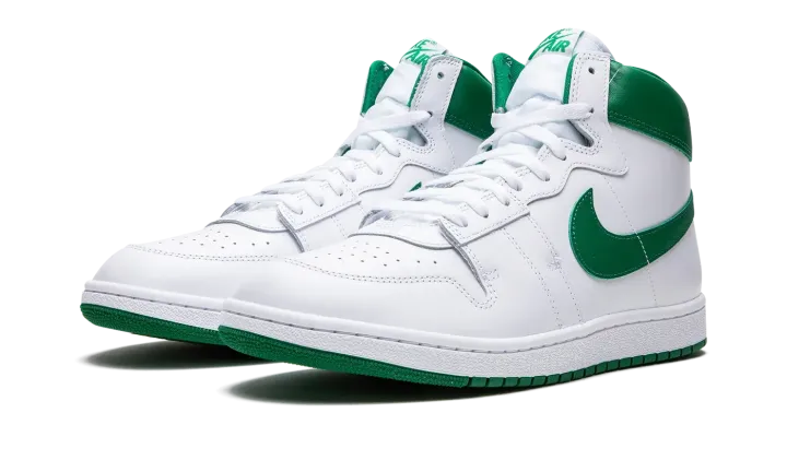 The Nike Air Ship "Pine Green" is a classic colorway of the retro basketball shoe that was once worn by Michael Jordan during his rookie year. Presented in a simple, two-tone colorway, the shoe features a crisp white leather build with contrasting Pine Green leather Swoosh branding. Additional Pine Green accenting appears in the form of a leather collar with "Nike Air" detailing on the back and "Nike Air" logo insignia on the tongue. The shoe's white midsole and green rubber outsole complete the look. Release date: March 1, 2023