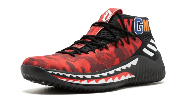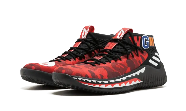 Streetwear legends BAPE teamed up with adidas Hoops for the first time in 2018, presenting the BAPE x adidas Dame 4 collection. Featuring BAPE's signature shark and camouflage graphics, Damian Lillard's fourth signature model transformed into a hypebeast's dream, easily becoming the most sought-after set of releases in the history of Lillard's sneaker line by far. Available here is the red camo edition that released only at the adidas 747 Warehouse St. space in Los Angeles during NBA All-Star Weekend on February 16, 2018. The red BAPE Dame 4 colorway is more limited than the green and black camo versions, making it the most coveted of the three.
