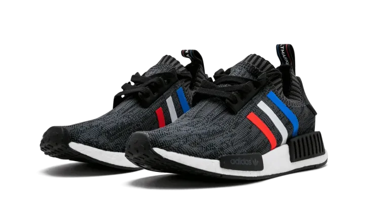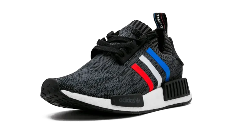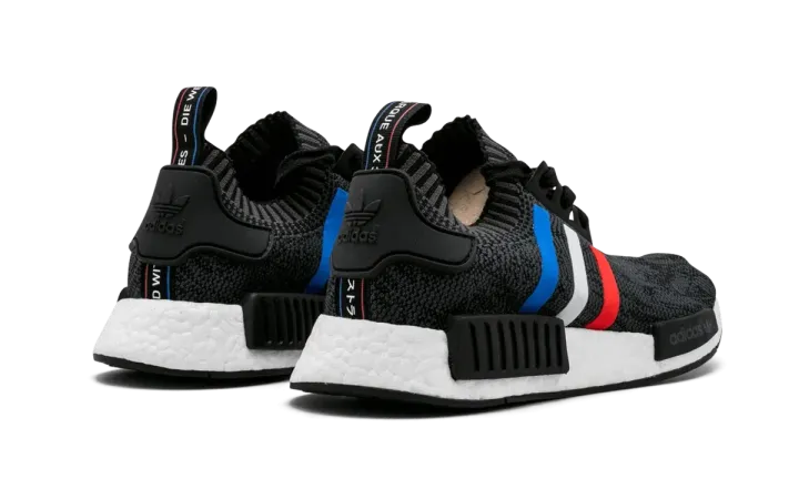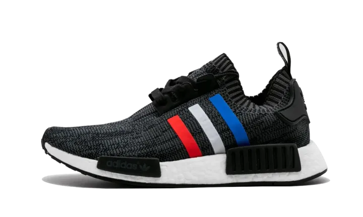 One-half of the adidas NMD R1 Primeknit "Tri-Color" pack, this clean take on 2016's most popular sneaker features a Core Black-tinted woven Primeknit upper. Three Stripes with a tri-colored treatment offers some variation, which black accents and a white Boost midsole balance out the shoe.