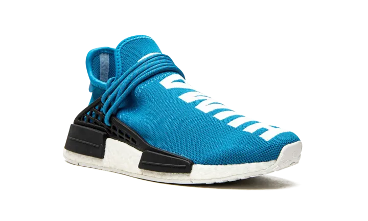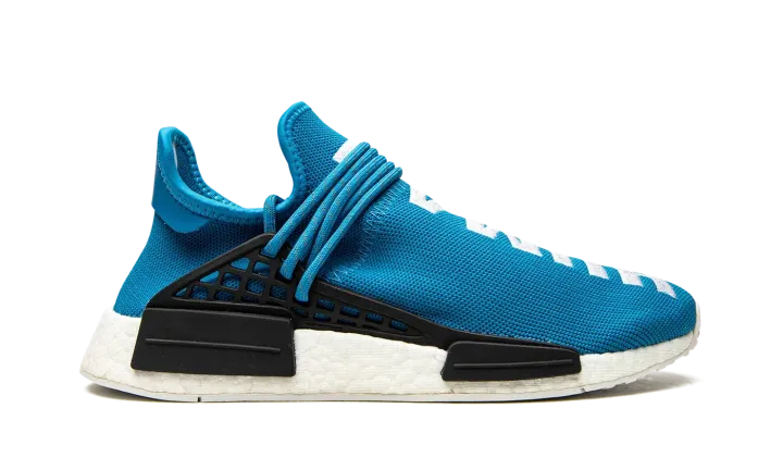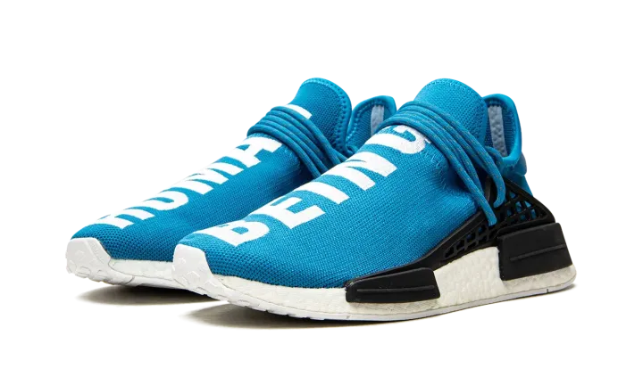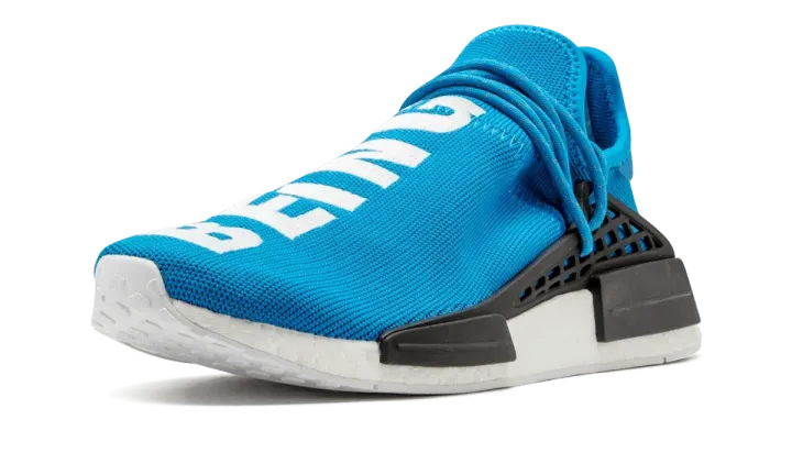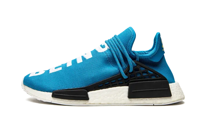 Part of the initial release of the Pharrell x adidas NMD Human Race, this bright blue sneaker helped kick off a craze for the silhouette in 2016. The eye-catching edition has "Human" stitched across the top of the left shoe, and "Being" stitched across the top of the right.