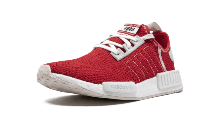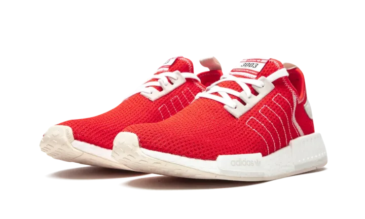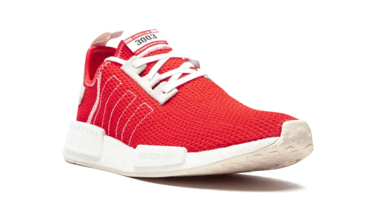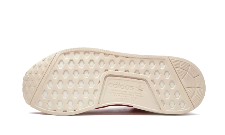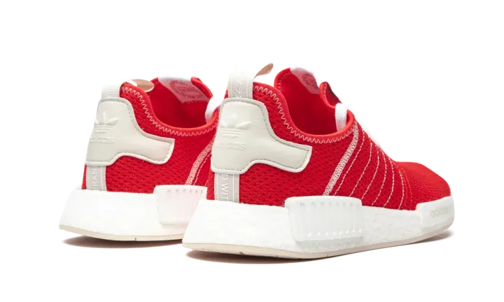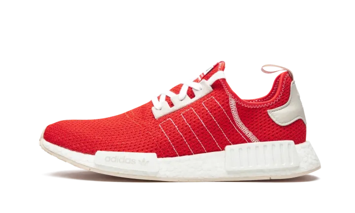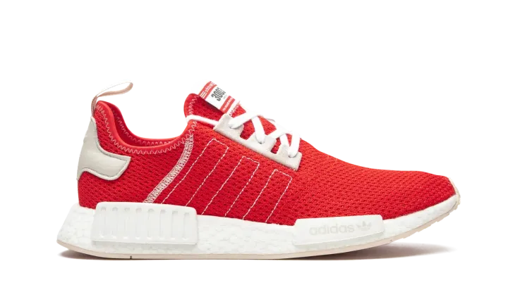 The adidas NMD R1 in Active Red and Ecru Tint is a vibrant low-top lifestyle sneaker that will liven up anybody's closet. The NMD model ranks among the more popular of the knit-based adidas offerings, as its sporty vibe transitions well from season-to-season. Here, the adidas NMD R1 dons a lively Active Red knit base with outlined Three Stripes branding on the mid-panel and contrast white stitching on the lateral panel and collar. Light grey Ecru Tint suede eyelets breaks up the red base, as does the light grey leather heel patch with embroidered adidas branding layered on top. Adidas' beloved white Boost sole — complete with grey EVA notches — finishes off the look.