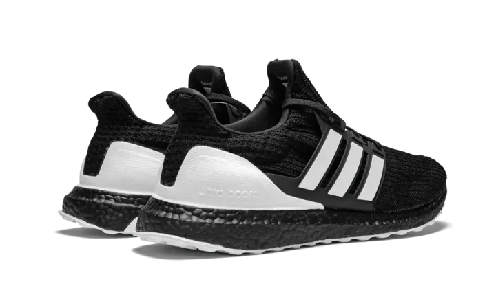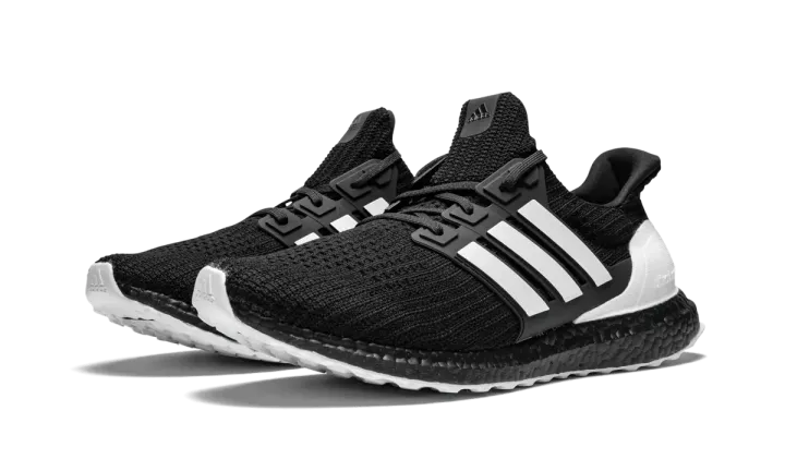 The adidas UltraBoost 4.0 "Orca" is a popular colorway of the running shoe from the "Show Your Stripes" pack. The pack features bright white stripes on the cage set against dark backgrounds for a high-contrast display of the 3 Stripes branding. This colorway of the modern runner in black and white picked up the "Orca" nickname due to its similar look to an Orca whale. The solid black Primeknit upper is complemented with a black Boost midsole. The adidas UltraBoost 4.0 "Orca" from 2018 was an instant hit thanks to its clean look and versatile, match-with-anything color scheme.