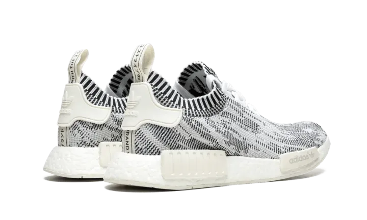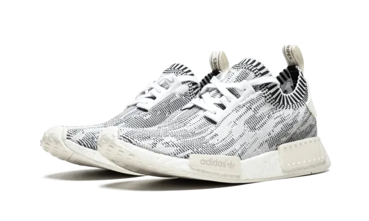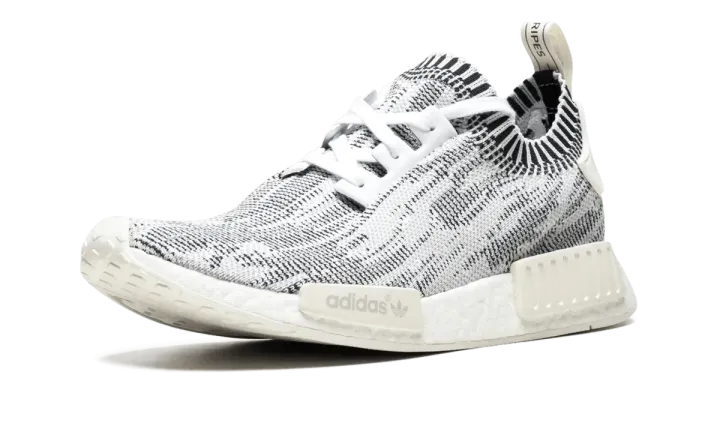 The sought-after camo pack of the adidas NMD Primeknit is featured here in the clean black, white, and grey color combination with cream accents.