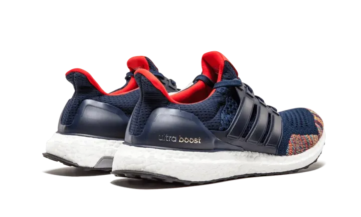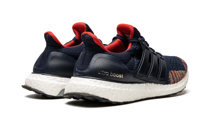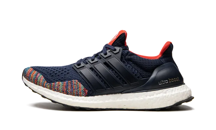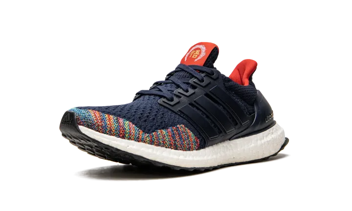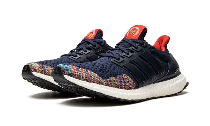 A special release celebrating the Chinese New year in 2015, this Ultra Boost is built with a blue Primeknit and mesh upper with a multicolored hit at the toe and Chinese characters on the tongues.