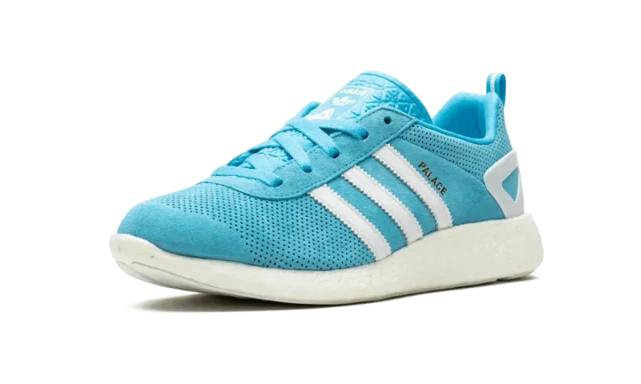 The special adidas silhouette by the Palace skateboard company receives a premium makeover with a Boost sole unit and premium suede upper in light blue.
