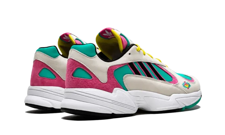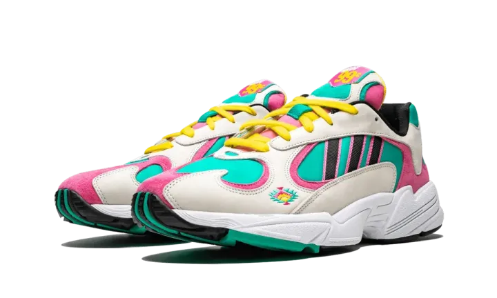 The AriZona x adidas Yung-1 "Iced Tea" is one of the four collaborative sneakers by the beverage company and adidas that released during the summer of 2019. The pack included the Yung-1 and Continental 80, each in two colorways inspired by the cans of the Iced Tea and Green Tea flavors from AriZona. This Yung-1 represents the Iced Tea, featuring a teal, pink, black, light tan, and yellow color combination to mirror the look of the can. The 99 cent price tag logo from the can is stitched on the tongue, while the Southwestern design from the can design is found on the toe. The AriZona x adidas collection was released on July 19, 2019 at a pop-up shop in New York City. Due to each shoe being sold for only 99 cents as a reference to the price of an actual can of the tea, large crowds created chaos and the event was promptly shut down by the NYPD before all pairs were sold.