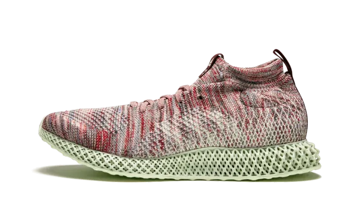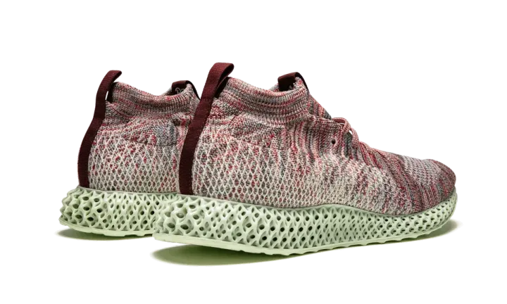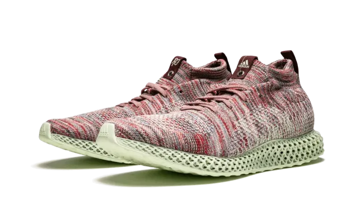 The Kith x adidas 4D Runner "Aspen" is a limited edition collaboration between Ronnie Fieg and adidas Consortium that brings back the famous "Aspen" colorway in a new way for 2018. First seen on a premium adidas release from Fieg in 2016, the striking multi-color Primeknit weave incorporates dark red, white, and grey shades. On the 4D Runner, the pattern is used on a mid-top upper that sits above adidas's innovative 4D midsole technology in its signature mint-green hue. Released in extremely limited quantities in November 2018, the Kith x adidas 4D Runner "Aspen" is one of the year's most sought after models for Fieg and adidas fans.