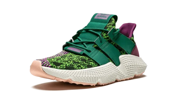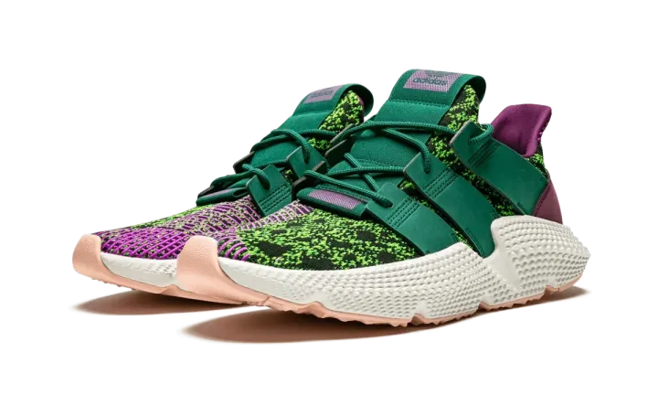 The Dragon Ball Z x adidas Prophere "Cell" is a member of the epic collaboration from the anime franchise and the Three Stripes in 2018. This eye-catching version of the Prophere represents the Dragon Ball Z villain Cell, replicating the scaly, speckled look of his reptilian body across the woven textile upper in green with purple accents. Striped purple detailing is added to the heels and medial side of the toes, while a white foam midsole and pink rubber outsole finishes off the villainous design. Released in limited quantities, the Dragon Ball Z x adidas Prophere "Cell" is a must have for adidas and Dragon Ball Z fans.