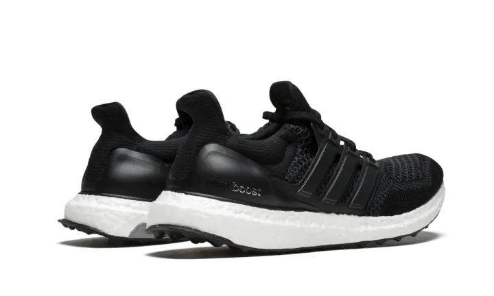 Simple yet very effective, this clean colorway of the popular Ultra Boost features a predominantly black upper with a light contrast of grey interwoven into the toe area.