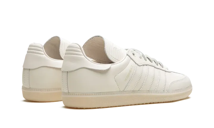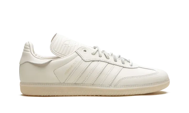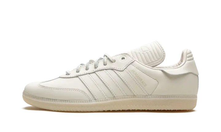 The Pharrell x adidas Samba Humanrace "Cloud White" is a collaboration between Pharrell Williams's lifestyle brand and adidas on a monochromatic white colorway of the retro sneaker. From a collection of adidas Sambas by Humanrace with a monochromatic appearance, the "Cloud White" is complete with an all-white leather design. Tonal leather Three Stripes branding and a "Humanrace" logo are seen on the sides. An elongated tongue gives the Samba by Humanrace a vintage soccer shoe look. White laces and a white rubber outsole complete the look. Release date: August 12, 2023