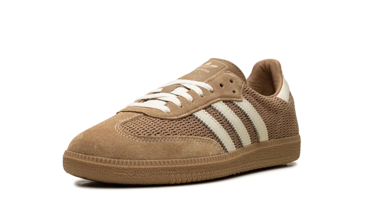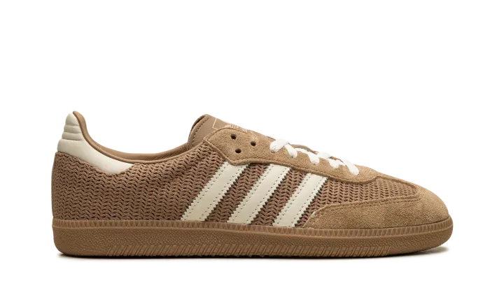 The adidas Samba OG "Cardboard" is a colorway of the retro shoe with a brown-based look inspired by the '70s leisure scene. The upper is made of an airy, lightweight Cardboard-colored mesh and contrasted with Chalk White leather Three Stripes on either side. More Chalk White accenting appears on the heel and laces. Classic "adidas" detailing can be found on the tongue. Underfoot, a thin Cardboard rubber sole completes the look of this versatile sneaker. Release date: April 1, 2024