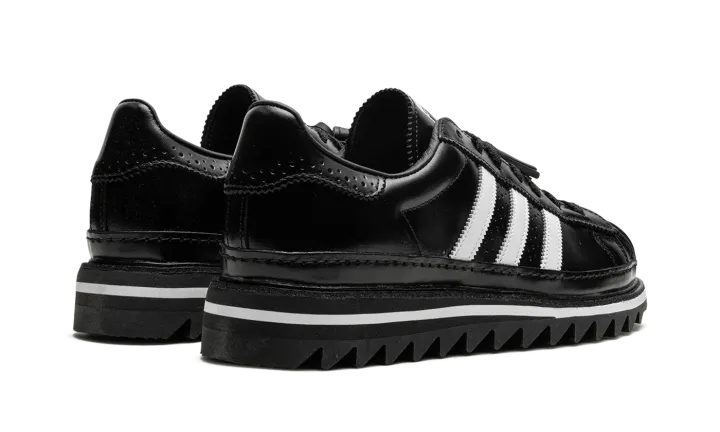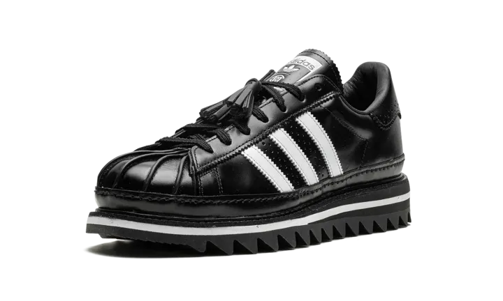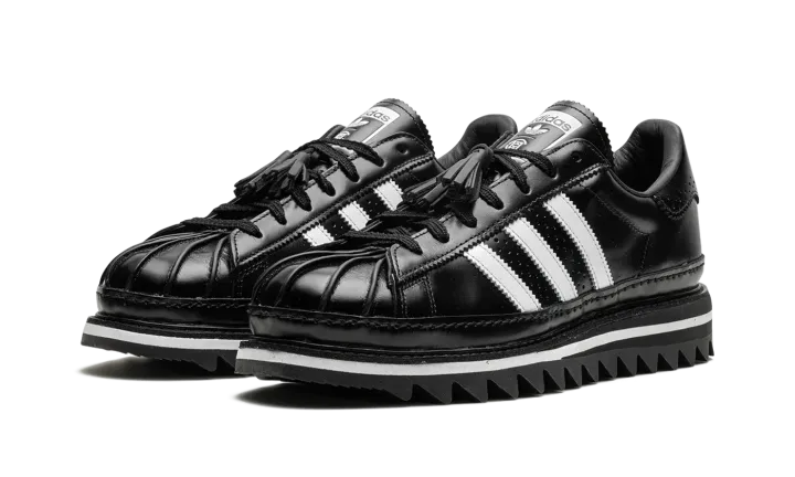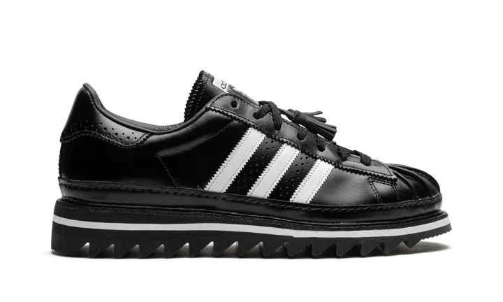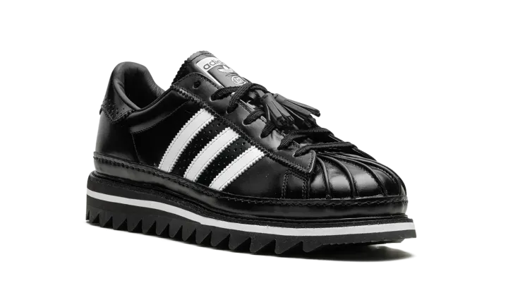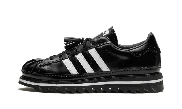 The Superstar 'CLOT - Black' shoe blends classic Adidas Superstar style with a sleek black aesthetic, offering a versatile and timeless addition to any sneaker collection.