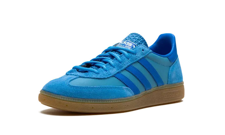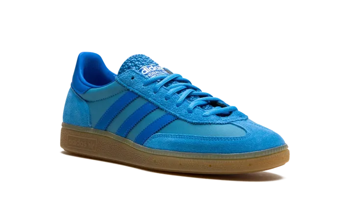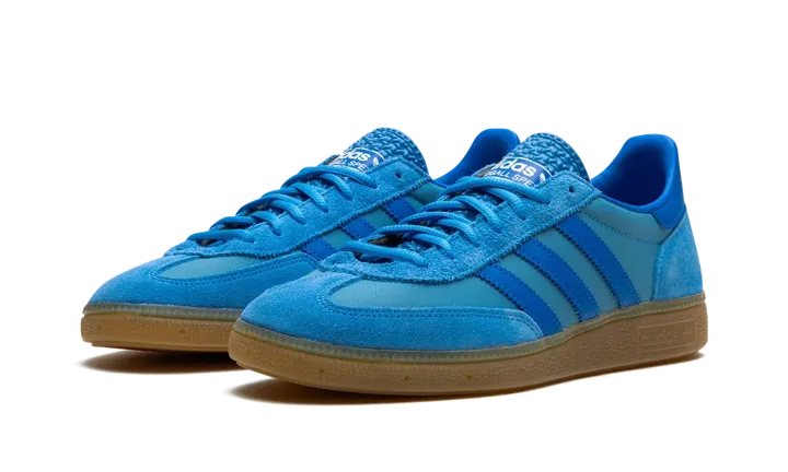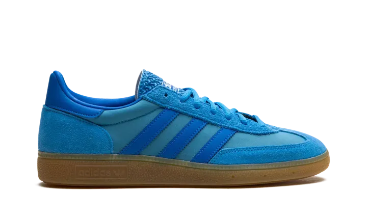 The adidas Handball Spezial "Pulse Blue/Gum" is a colorway of the retro shoe with a blue-based appearance. A bold colorway, the adidas Handball Spezial "Pulse Blue/Gum" features a Pulse Blue canvas base and tonal suede overlays on the toe, eyelets, and heel. Additional Pulse Blue accenting appears on the Three Stripes on the sides. A classic-looking "adidas Handball Spezial" logo is printed in white on the tongue. Underfoot, a gum rubber sole puts the finishing touches on the design.