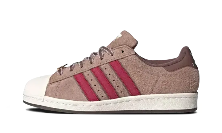 The Superstar 'Teenage Mutant Ninja Turtles - Splinter' shoe features a design inspired by the iconic character Splinter, blending classic Adidas Superstar style with unique Teenage Mutant Ninja Turtles details.