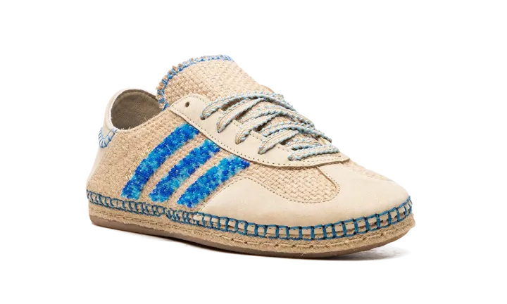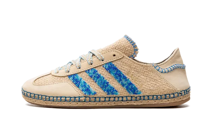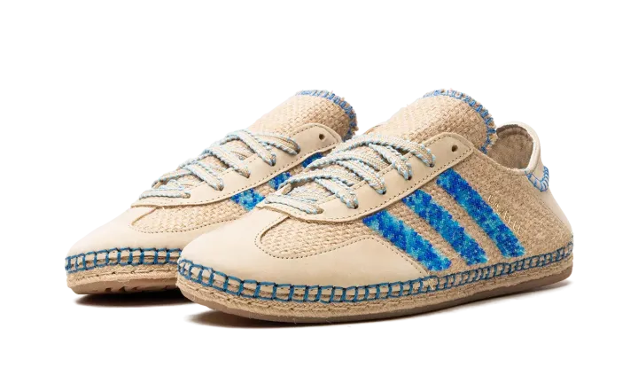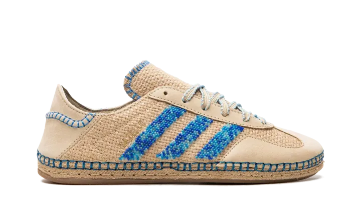 The CLOT Adidas Gazelle Linen Khaki Light Blue Blue Bird blends classic Gazelle heritage with modern CLOT design. The Linen Khaki, Light Blue, and Blue Bird colorway brings a contemporary twist to the iconic silhouette. This collaboration offers a unique and stylish sneaker that celebrates both heritage and innovation.