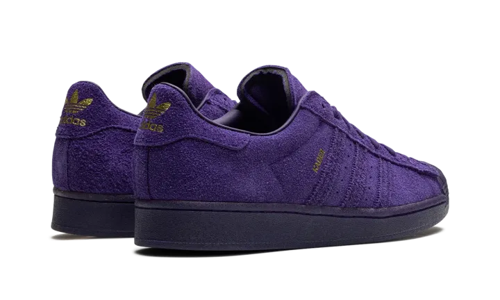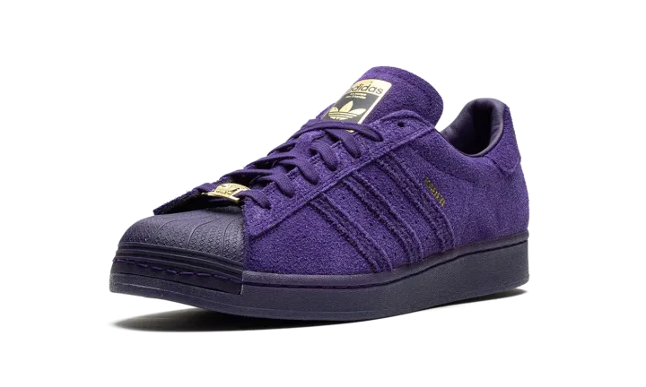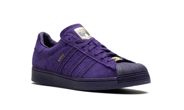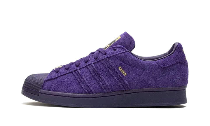 The Superstar ADV 'Kader - Sylla Dark Purple' shoe features a sleek dark purple colorway, offering a stylish and performance-ready take on the classic Superstar silhouette for skateboarding or everyday wear.