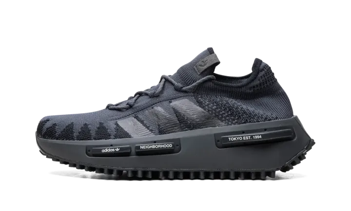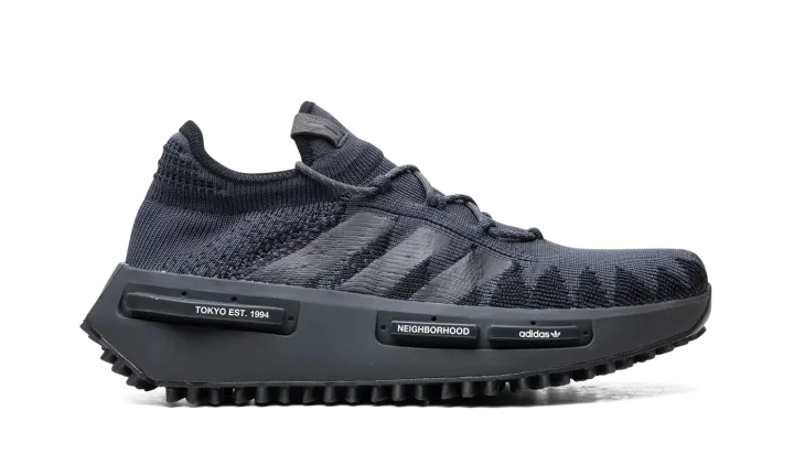 The NEIGHBORHOOD x adidas NMD S1 "Knit Black" is a collaboration by the Japanese label and adidas on the future-forward sneaker. Inspired by punk culture and aesthetics, the NEIGHBORHOOD x adidas NMD S1 has a mostly monochromatic appearance that excels in versatility. The upper features a breathable Primeknit construction with tonal black Three Stripes branding on the sides. In spite of the shoe's sock-like design, a traditional lacing system appears on top of the shoe. "Adidas," "NEIGHBORHOOD," and "Tokyo Est. 1994" branding can be found on the inserts on the midsole. Adidas's Boost cushioning is embedded in the midsole and provides all-day comfort. Release date: November 11, 2023