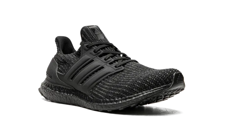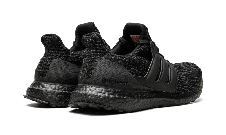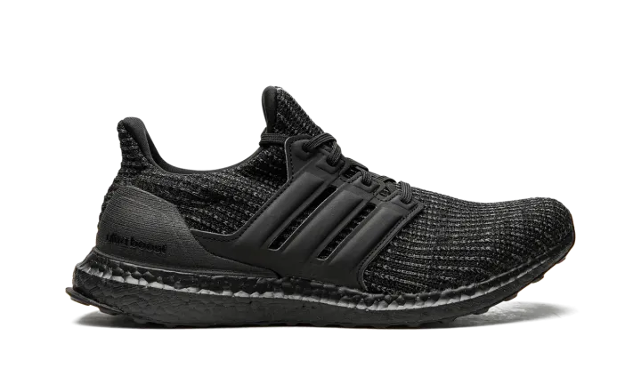 The adidas UltraBoost 4.0 DNA "Core Black" takes on a clean, simple, and ultra versatile colorway. The ventilated knit upper in black forms a sock-like construction with high-performance recycled PRIMEBLUE material, while resting atop the signature white BOOST midsole—which creates comfort and softens a runner's stride. The midfoot cage features adidas's trademark Three Stripes in black, giving off a subtle black-on-black look. Following the monochromatic theme is a black Continental stretch-web outsole to match.