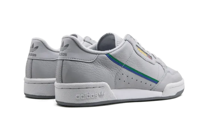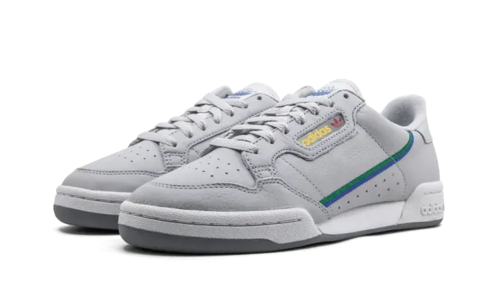 The adidas Continental 80 gives the adidas Originals casual sneaker new life with subtle pops of color. With a low profile and a vintage 1980s tennis shoe aesthetic, the Continental 80 features a grey full-grain leather upper, foam midsole, and rubber outsole. Thin green and blue textile stripes are applied to the upper, along with contrast branding in red and yellow just below the lacing system. This adidas Continental 80 released on February 1, 2019.